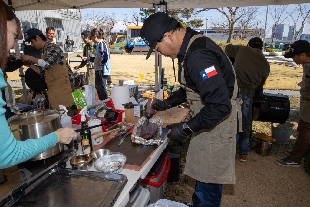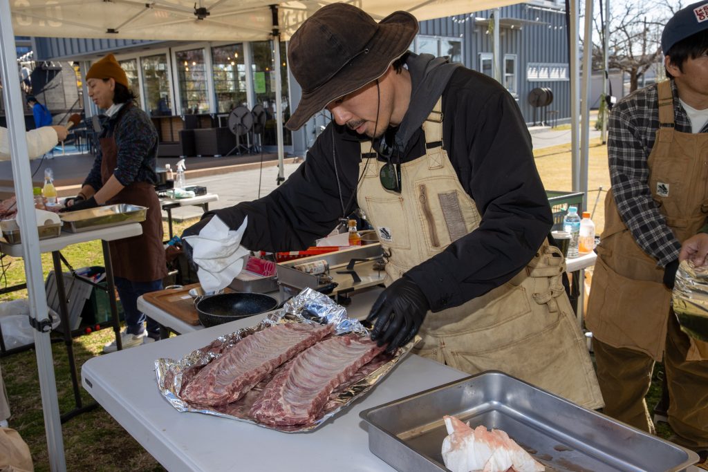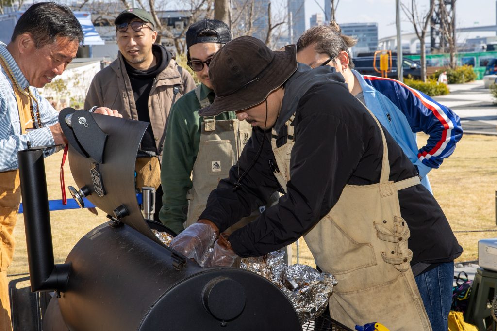 青梅青梅市にあるB-YARD Meatingによるブリスケットの作り方をデモンストレーション。
