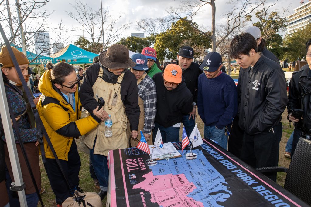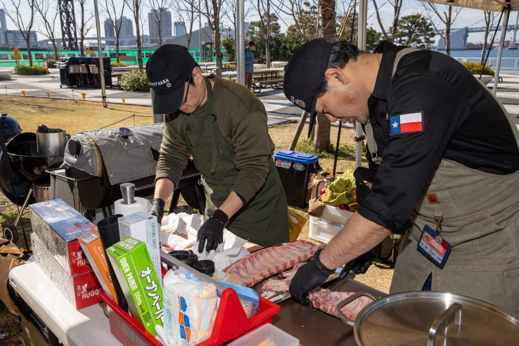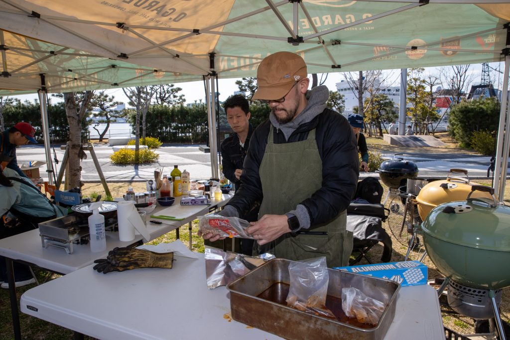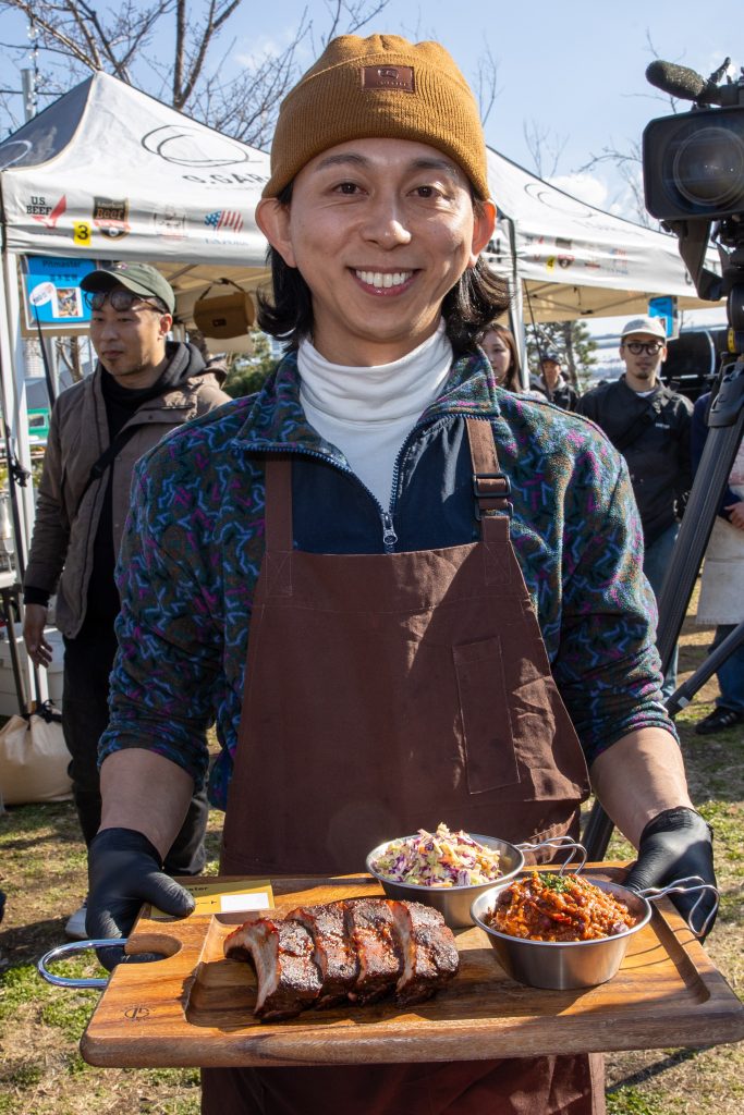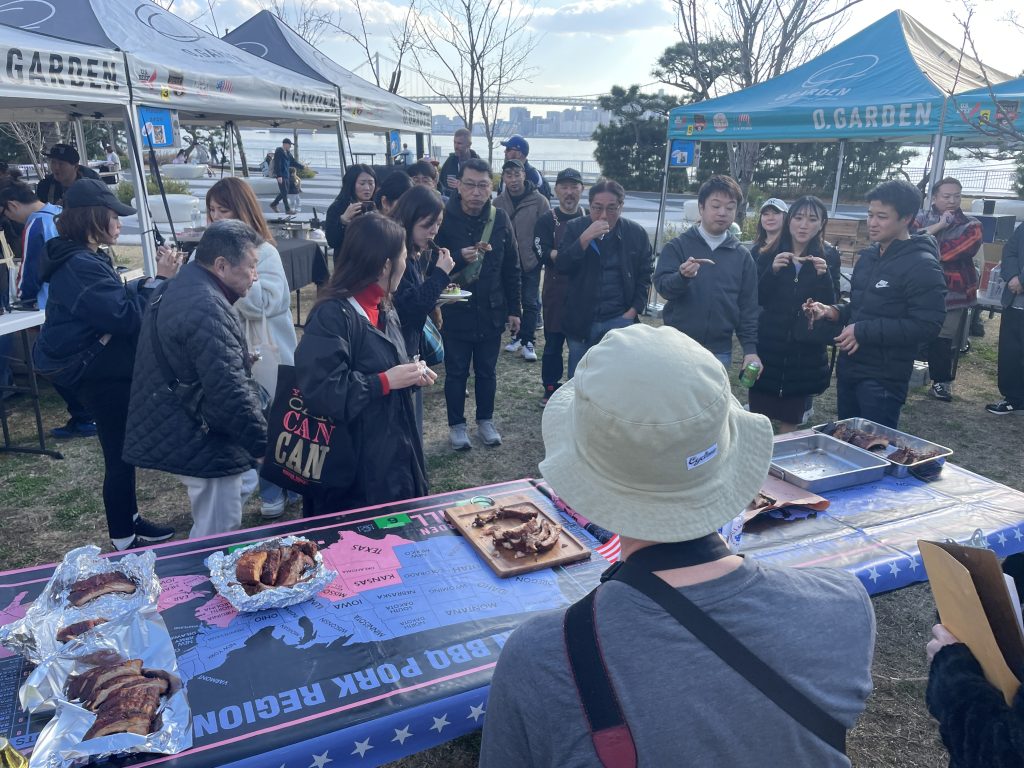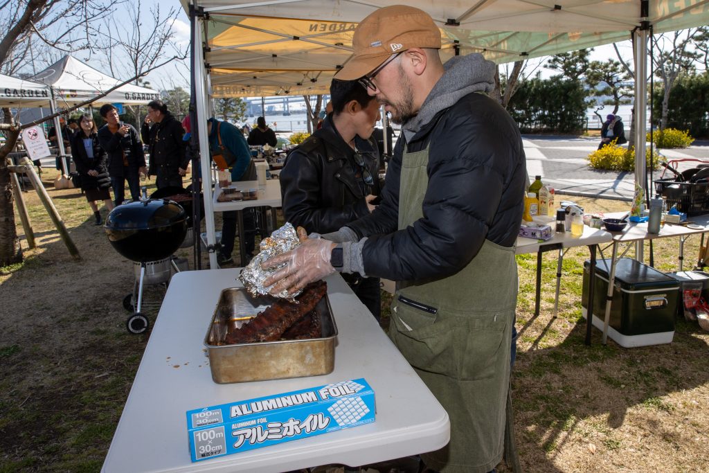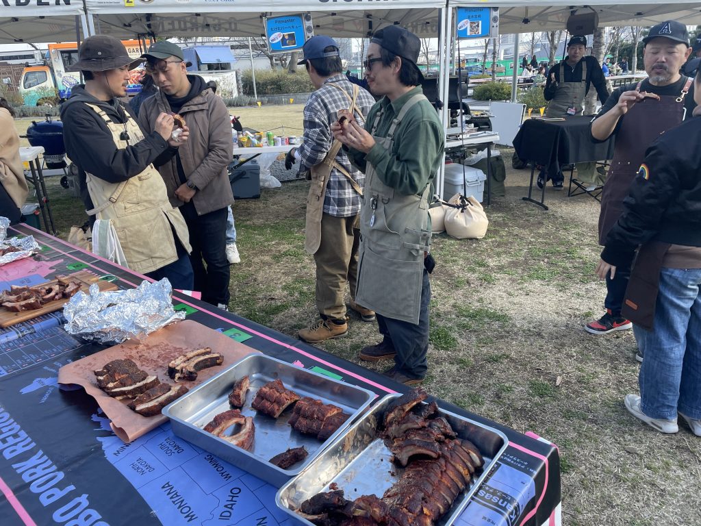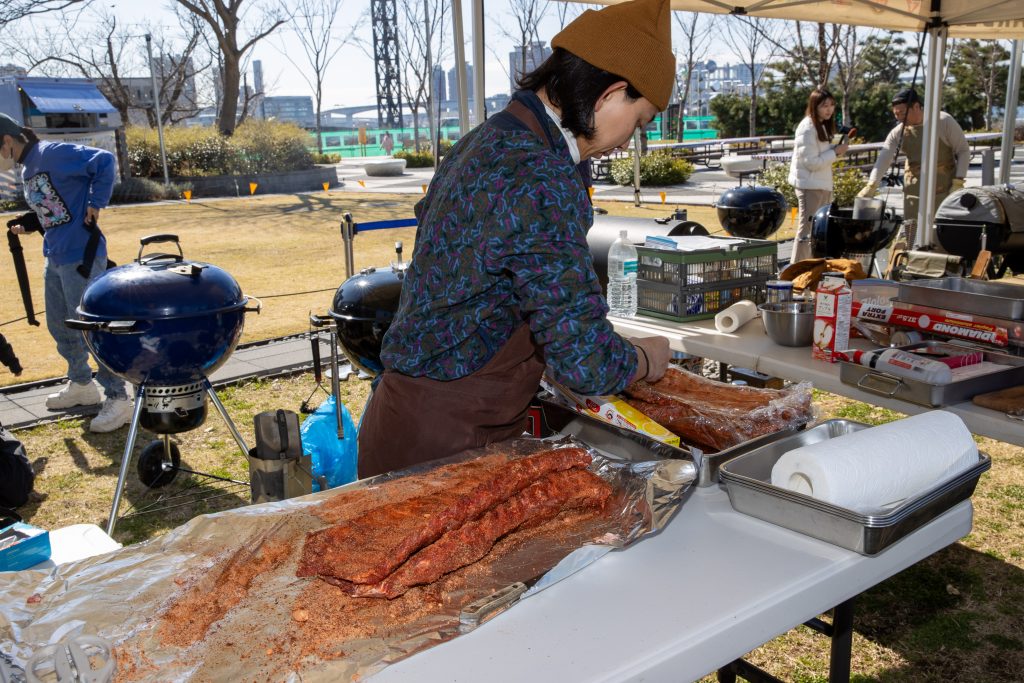 2025年3月20日、晴海ふ頭公園にて行われた大会は今年で2回目。アメリカンポークリブを使ったBBQの出来栄えを競います。今大会では競技ルールを変更し前回あったドライ部門とソース部門を廃止、自由な味付けのBBQポークリブと2種類のサイドディッシュを作り勝負。