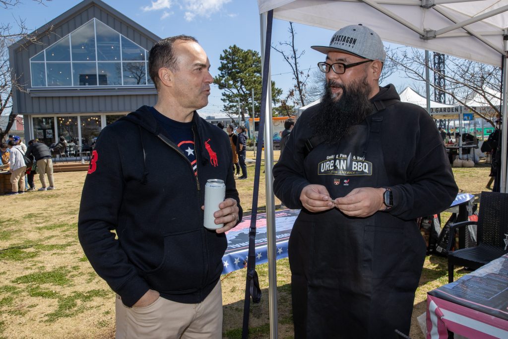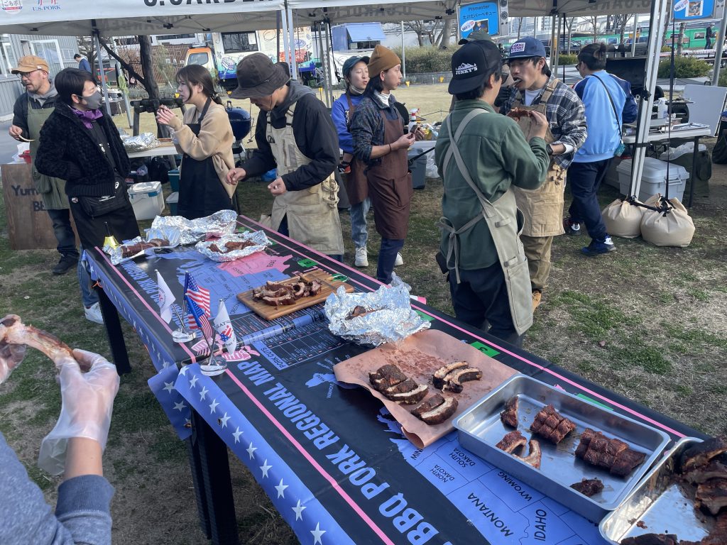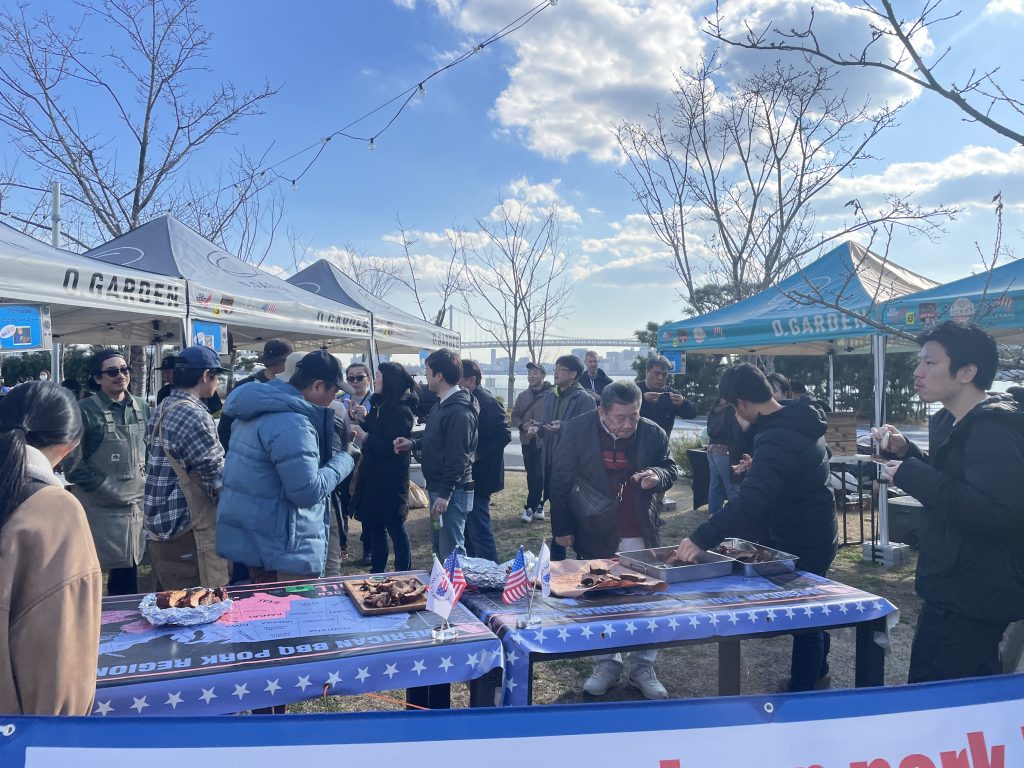 この大会から広くアメリカンBBQを知ってもらいたとの思いからコンテストと併用してHarumi Backyard BBQ Bashを開催。Bashとはパティーの事、直訳すると”晴海裏庭BBQパーティー”。3店舗のBBQレストランが出店、そろぞれのBBQの販売とブリスケットの食べ比べやBBQ調理のデモンストレーションを行い多くの方がBBQの美味しさを見て食べてたりピットマスターと話しをして触れる機会になりました。